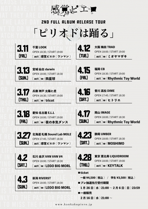 感覚ピエロ 「ピリオドは踊る」リリースツアーにヒトリエの出演が決定しました