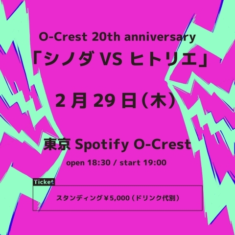 O-Crest 20th Anniversary「シノダ VS ヒトリエ」