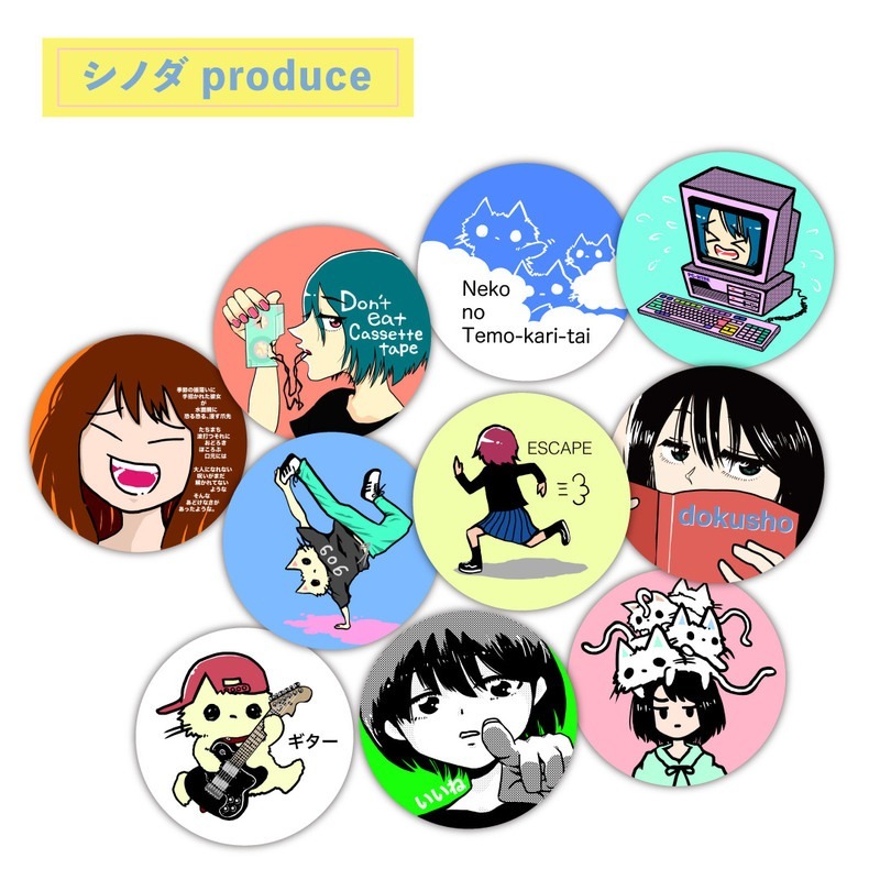 シノダの描いた猫達 復刻 ガチャ缶バッジ